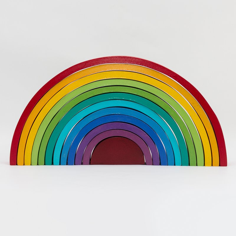 Su madera, imperfecta y natural, les da información sensorial muy valiosa. Sus piezas les ayudan a diferenciar formas y colores. Manipulándolo ganan destreza y coordinación. A través de él van comprendiendo conceptos complejos como el equilibrio, la simetría y la resistencia. Les abre la puerta de par en par al juego simbólico, a construir escenarios e imitar situaciones de la vida real.